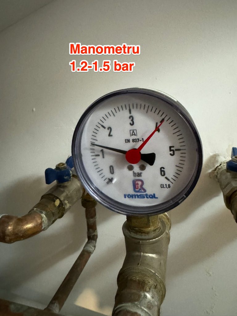 Presiunea din instalatia de incalzire trebuie sa fie intre 1.2-1.5 bar.