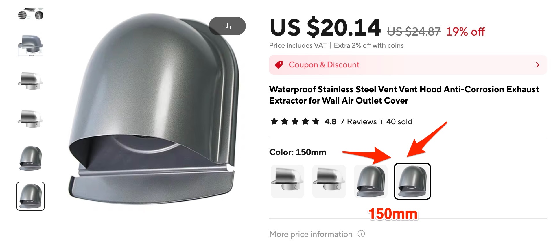– 150mm pentru evacuare hota