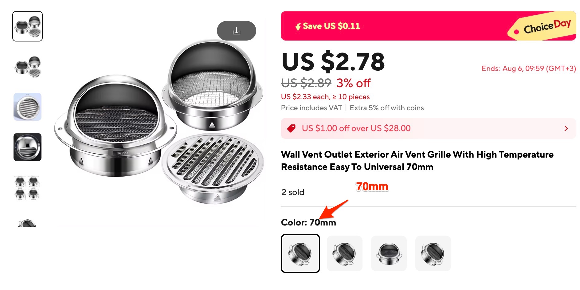 2. Grila egalizare presiune (selectati 70mm)
