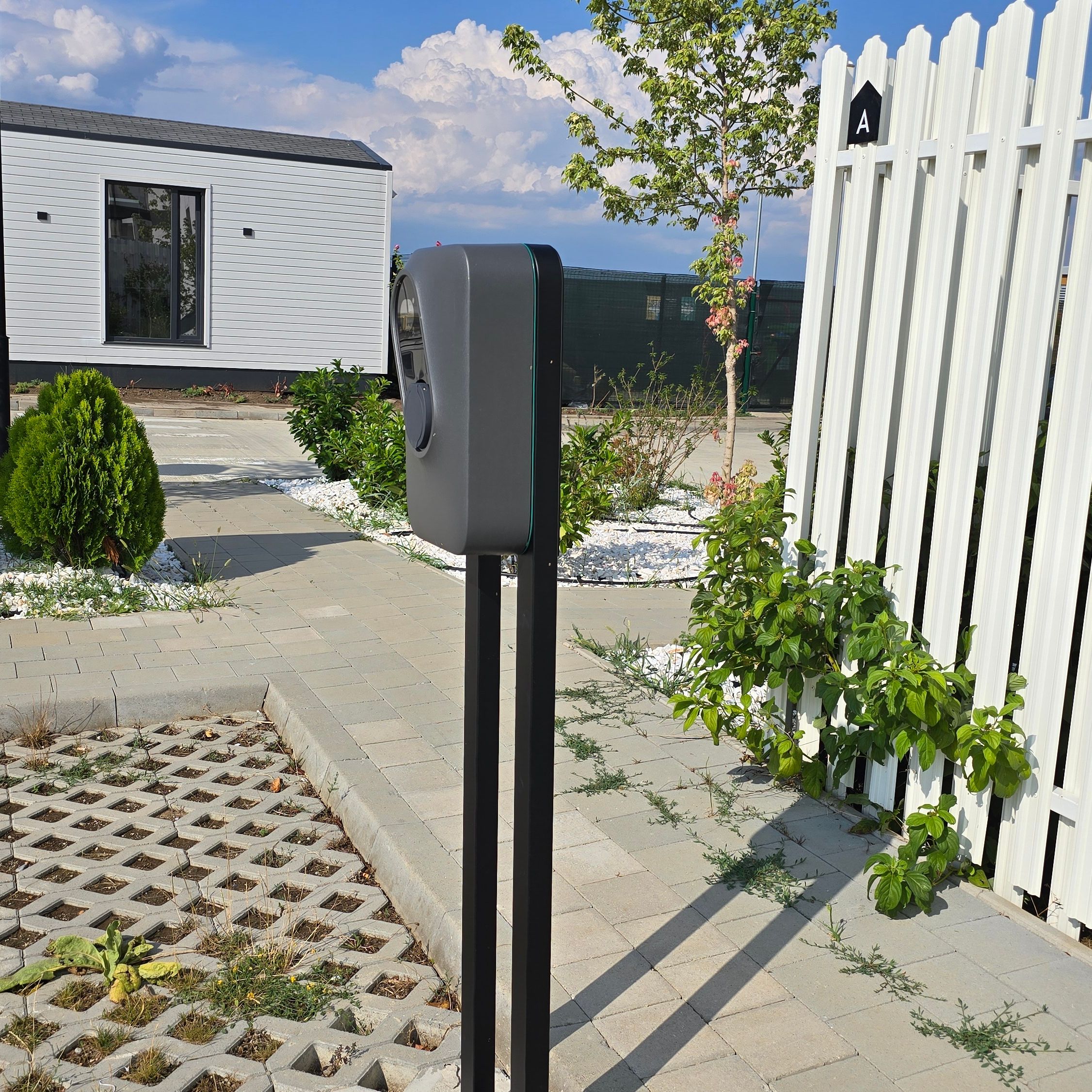 Mobexpert Homes dispune de o stație comună de încărcare EV Type 2 de 22kW, ce poate fi folosită de către orice locatar. Aceasta este localizată la intrarea în complex, în dreptul casei A1.